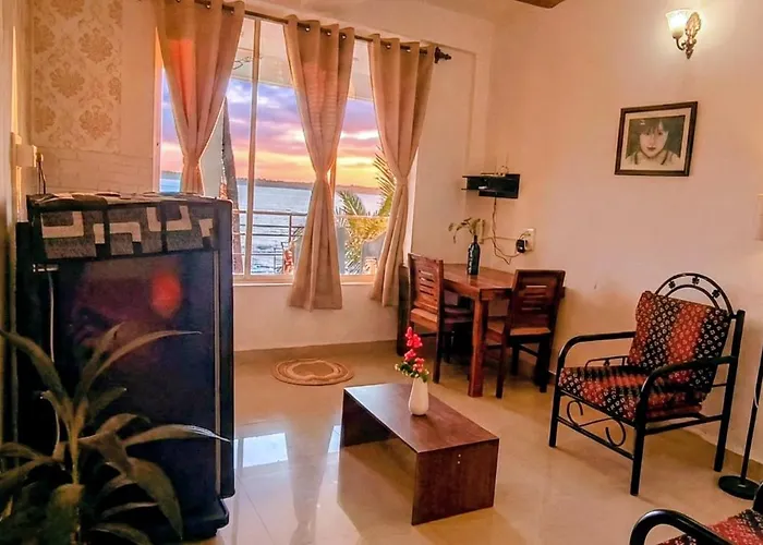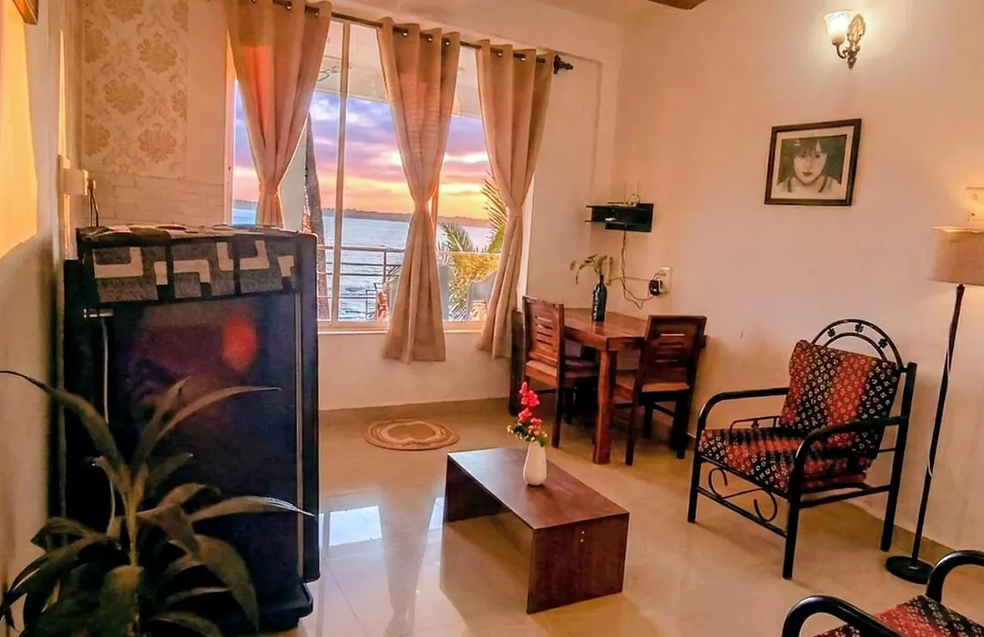 Das 4-Sterne-Hotel Gs Home On The Bay- Super Sea & Garden View Glass Studio Apartment Vagator liegt weniger als 12 Minuten zu Fuß vom Nachtleben von Goa entfernt und verfügt über einen Verkaufsautomaten und einen Ausflugsschalter vor Ort.
